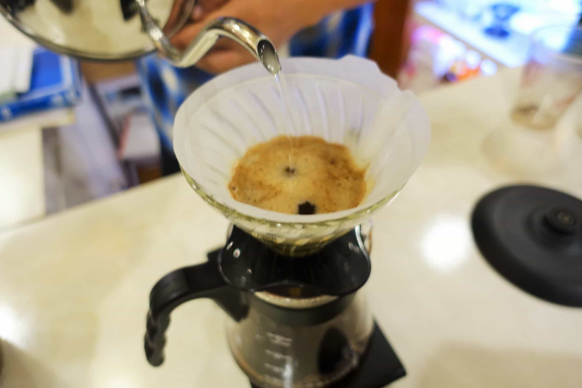 その場で豆をグラインドしてもらい、お湯の温度もちゃんと計測して淹れてもらえて中々本格的です。