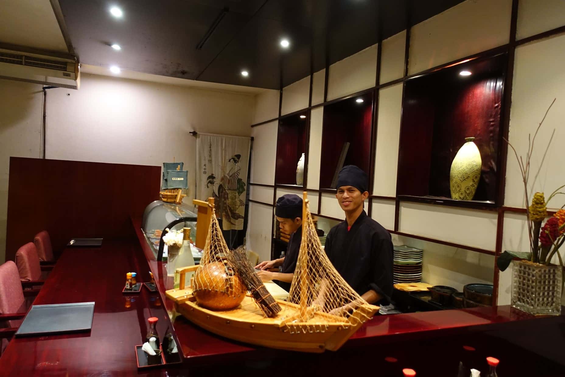 店内の内装がそれぞれ違い、左側では鍋料理、右側は寿司を始め、その他の料理を頂けます。