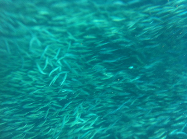 いわしの大群を恐れず近づいてみると、いわしトルネードの向きがガサっとかわりなんかおもしろい!